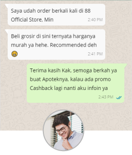 Lakukan Restok / Pembelian Perdana dengan Welcome Voucher di 88 Official Shop (Tokopedia / Shopee). Kirimkan bukti screenshot (tangkapan layar) transaksi ke WhatsApp 88 Official Shop di nomor 0888 0999 1231